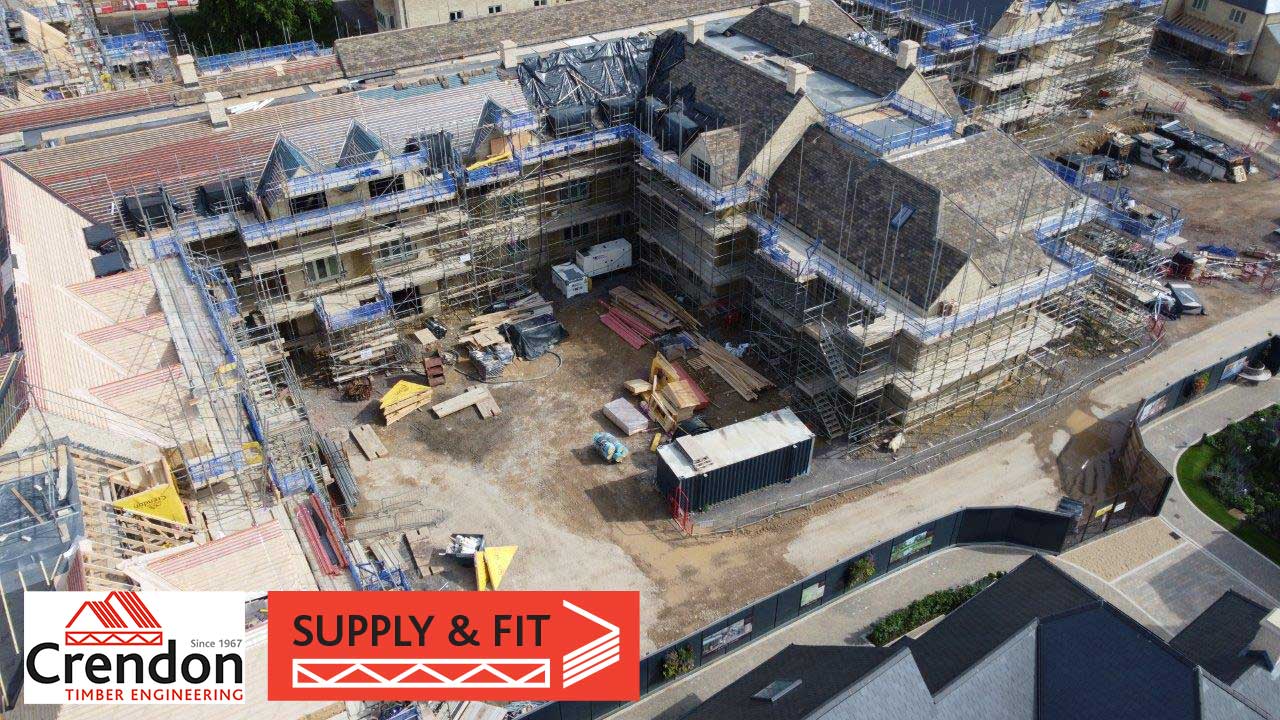 Crendon Timber Engineering have provided a full design, supply and installation package of roof trusses, dormer structures and solid oak porch canopies at our flagship £42M Siddington Park retirement village project in Cirencester.