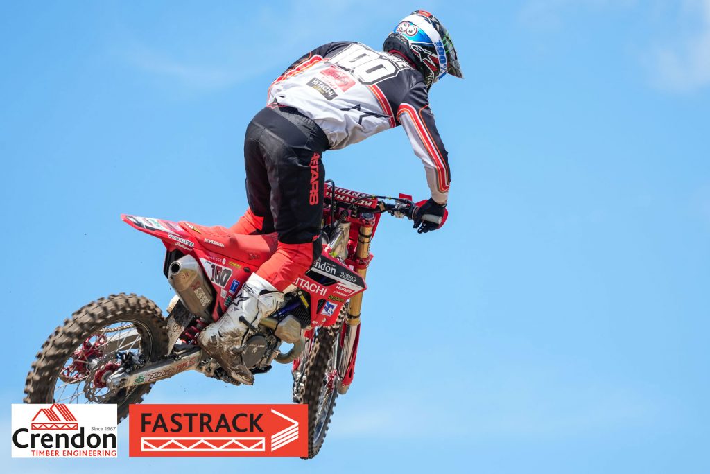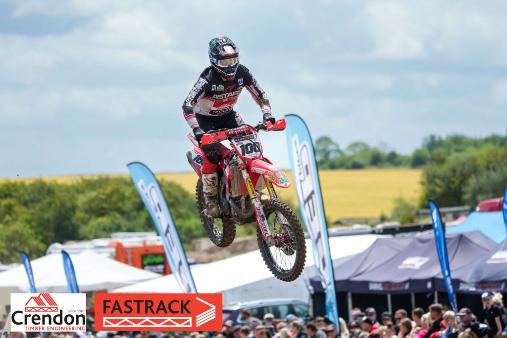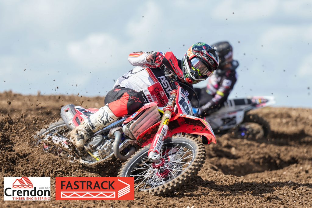 For an incredible eighth time this year, Crendon Fastrack Honda rider Tommy Searle ended on the podium of a national race in the MX Nationals at Cusses Gorse on Sunday. He took a fine second overall, only robbed of a stunning double win when a stone jammed his rear brake while he was leading the final moto.