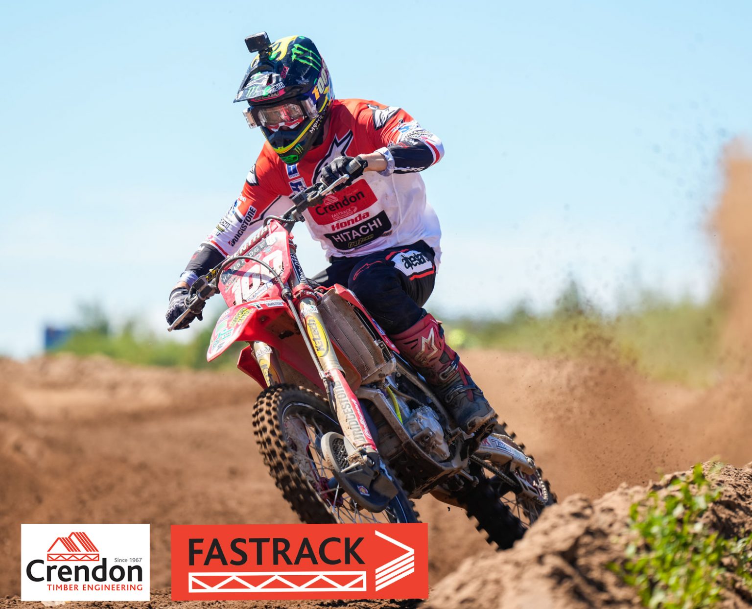 Searle’s team-mate Jay Hague didn’t have such a glorious ride. Hague stepped up from the MX2 class to the blue riband MX1 for Fatcat and, like Searle, had spent some time riding in deep sand on the Continent to dial in the Crendon Fastrack Honda CRF450R. He had a strong qualifying, taking ninth place. Then in the opening race a bike fault halted his charge on the opening lap.